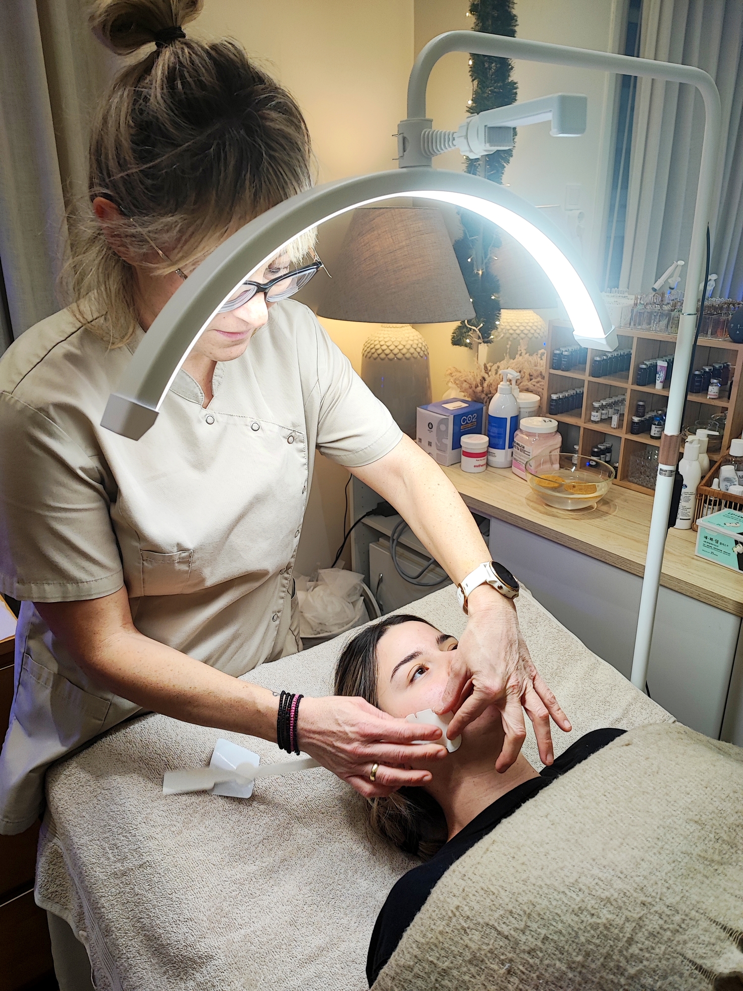 Οι σπουδαστές, υπό τη συνοδεία της Εκπαιδεύτριάς τους κας Δημητριάδη Κερασίας, είχαν την ευκαιρία να επισκεφθούν τον άρτια εξοπλισμένο χώρο της κας Μαρίας Παπαδήμα, να γνωρίσουν από κοντά και να ενημερωθούν για τα νέα, επαναστατικά μηχανήματα αισθητικής για πρόσωπο και σώμα, καθώς και για τις σύγχρονες εφαρμογές τους στον τομέα της αισθητικής και της ευεξίας.