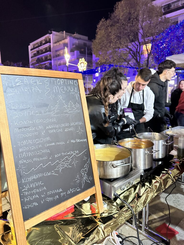 Το κέντρο του Βόλου φόρεσε τα γιορτινά του και η περιοχή του Αγίου Νικολάου πλημμύρισε από μουσική, αρώματα, γεύσεις και χαμόγελα την Παρασκευή 19 Δεκεμβρίου 2025, στη μεγάλη Χριστουγεννιάτικη γιορτή της Ι.Σ.Α.Ε.Κ. «ΔΗΜΗΤΡΑ».