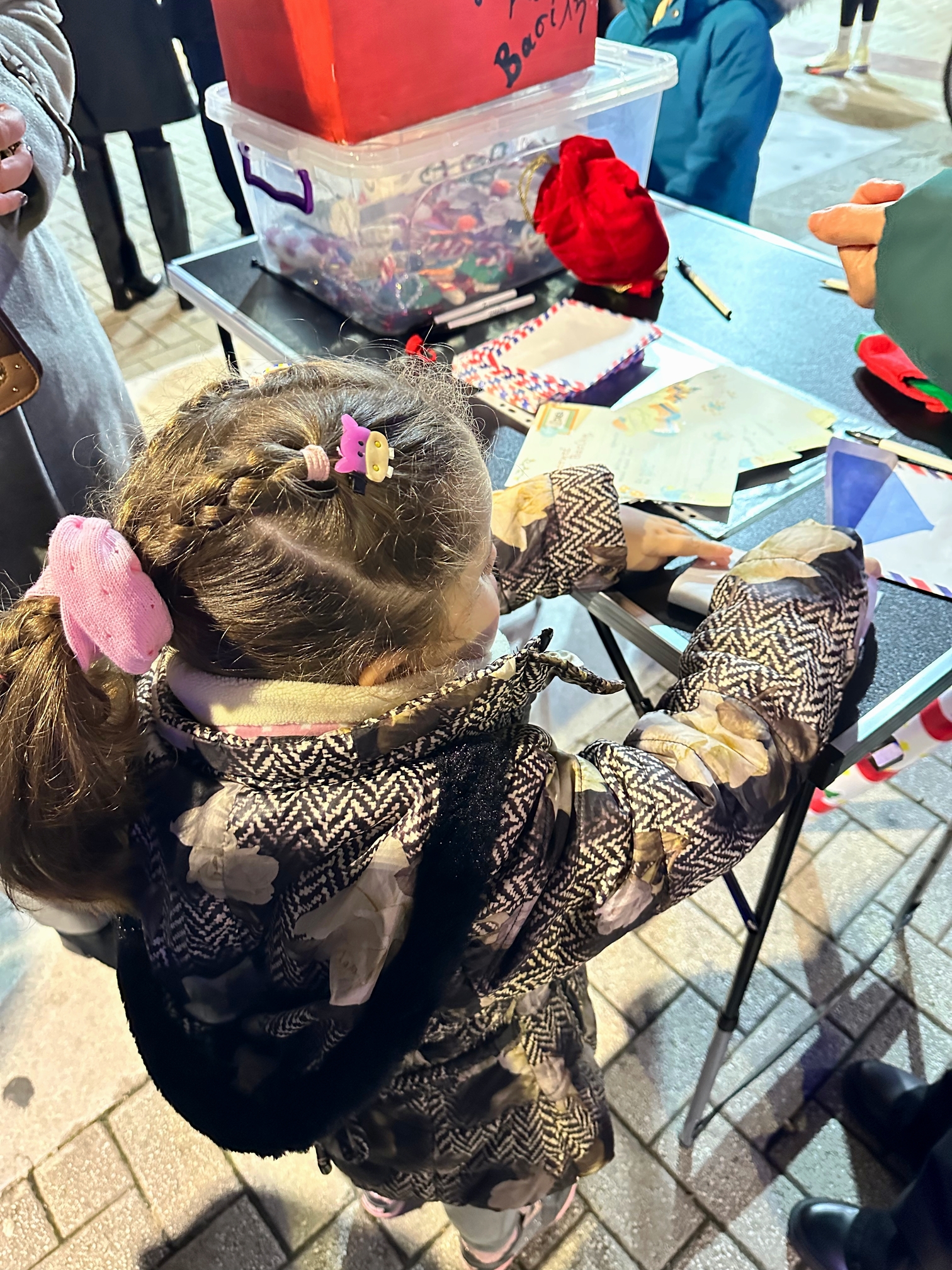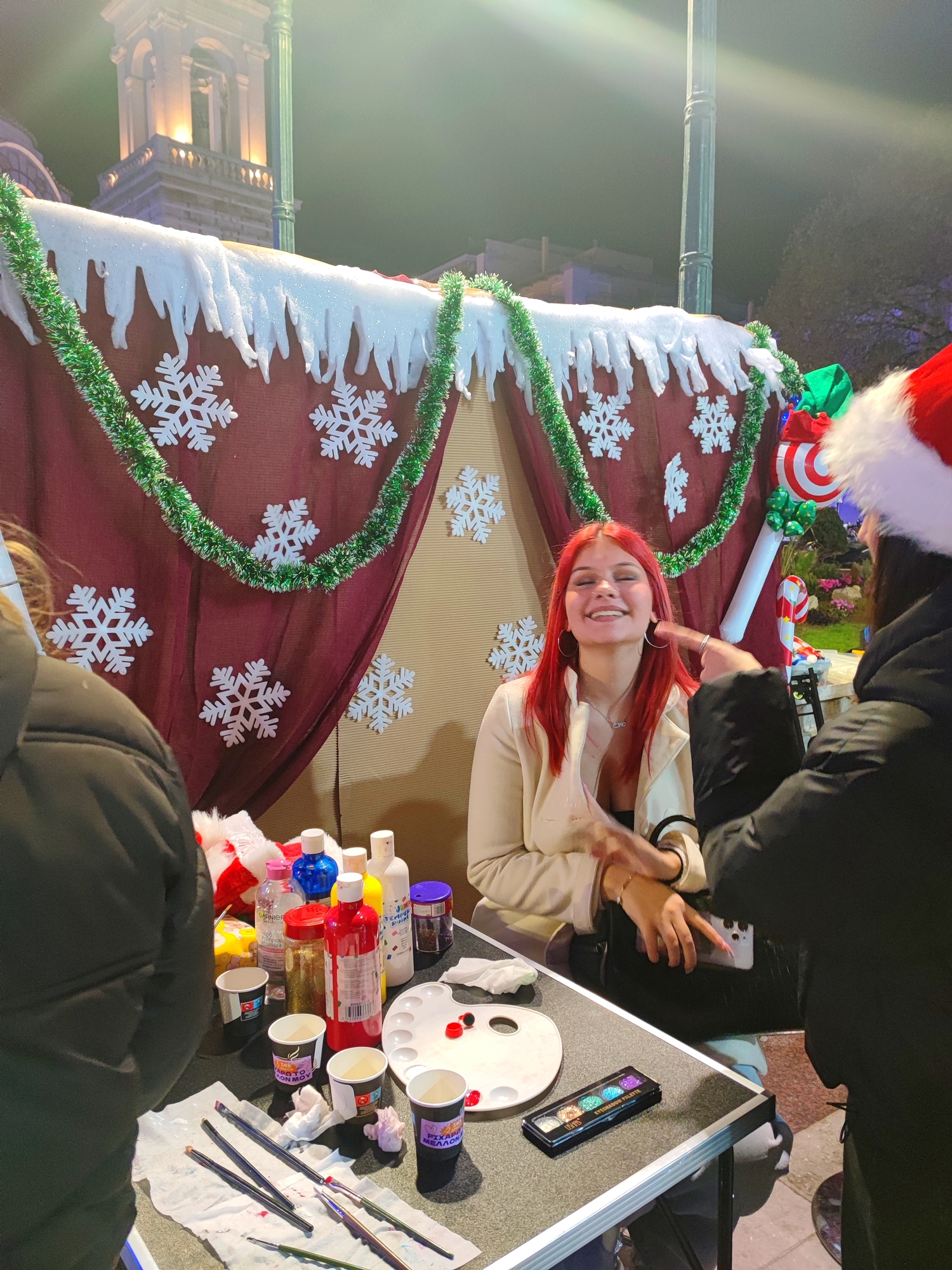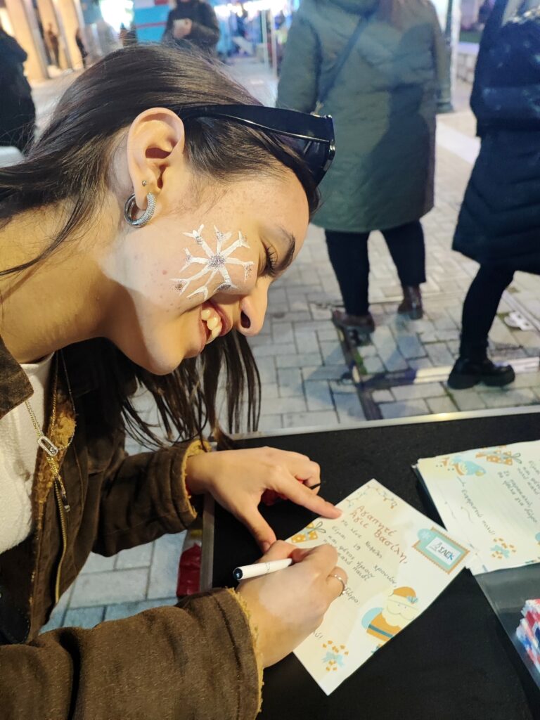 Τα τμήματα Αισθητικής με την κ. Μάχη Τριαντάρη και Κομμωτικής με την κ. Ελπίδα Σταύρου μοίρασαν χαμόγελα στους μικρούς πρωταγωνιστές της βραδιάς με χριστουγεννιάτικα face painting σχέδια και γιορτινά χτενίσματα, ενώ το τμήμα Παιδαγωγικών με την κ. Μαρία Μεταξά μοίρασε χειροποίητα δωράκια φτιαγμένα στο εργαστήριό μας και βοήθησε τα παιδιά να γράψουν τα γράμματά τους στον Άγιο Βασίλη.
