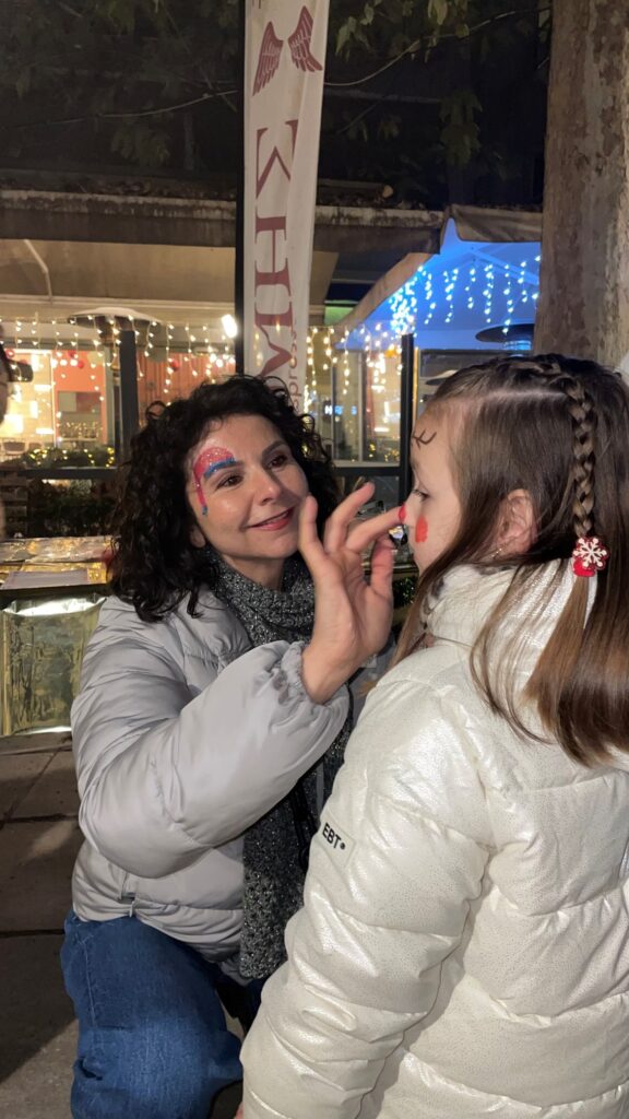 Face painting, γιορτινά χτενίσματα και πολύχρωμες μεταμορφώσεις έδιναν ζωντάνια και χαμόγελα στον χώρο.